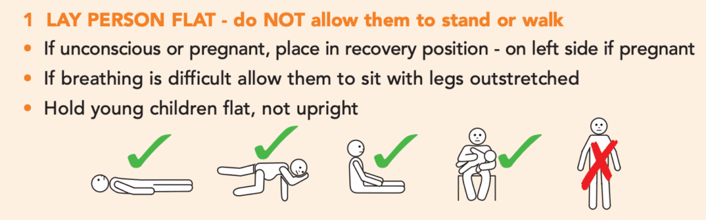 ‘Nip Allergies in the Bub’ has a great video and images showing how to position someone having a severe allergic reaction, and more information on the correct response.